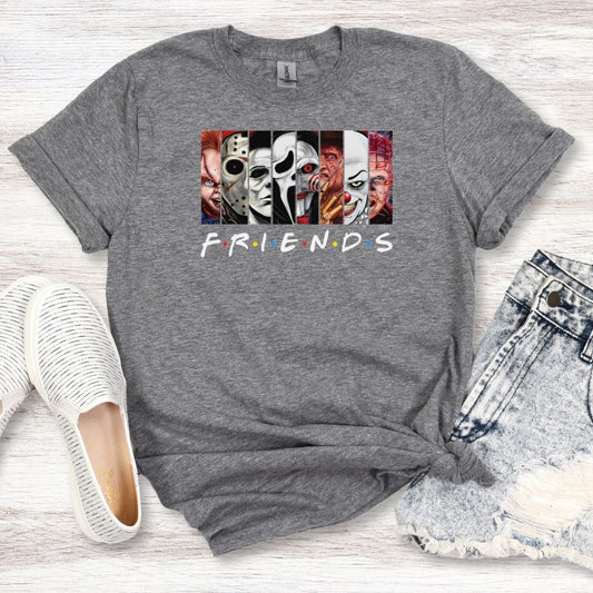 Horror Faces Friends Graphic Tee – Spooky & Stylish